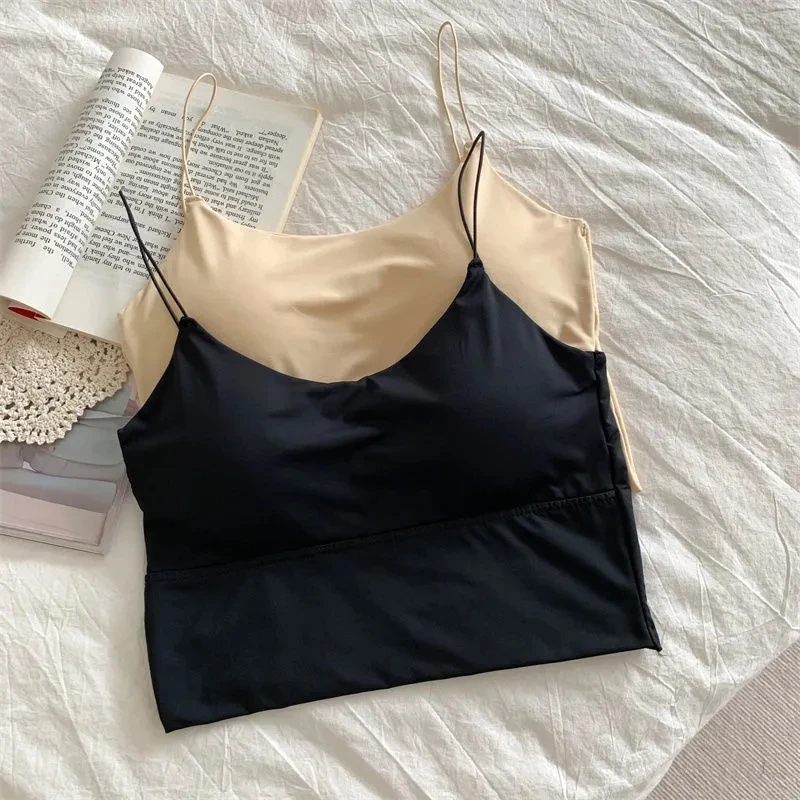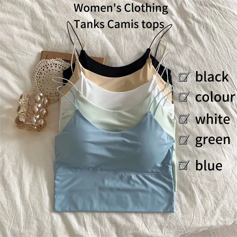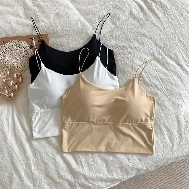 Women Crop Tops Sexy Solid Color Camisole Ice Silk Tube Top Seamless